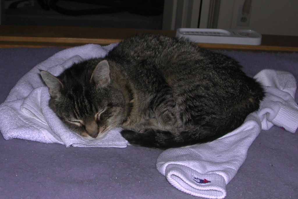 I'm going to have her remains cremated and I'm going to bury them just out back in the woods. I expect to live here for some time and I like to think Dummy will be nearby in her beloved outdoors. And that right now she's in kitty heaven sleeping on a big pile of warm clean laundry.